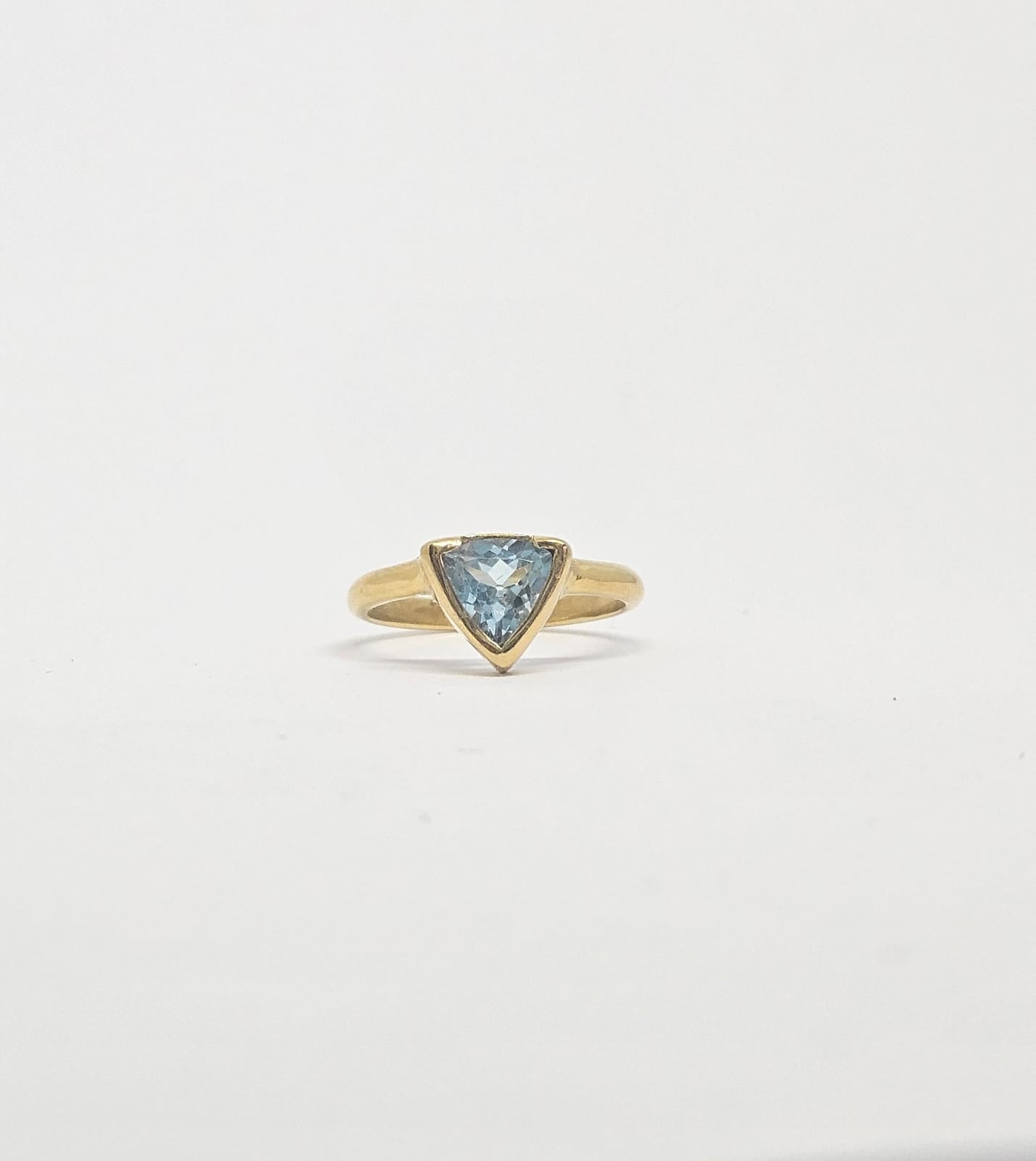 Anillo hecho a mano en plata 950 con topacio azul enchapado en oro.