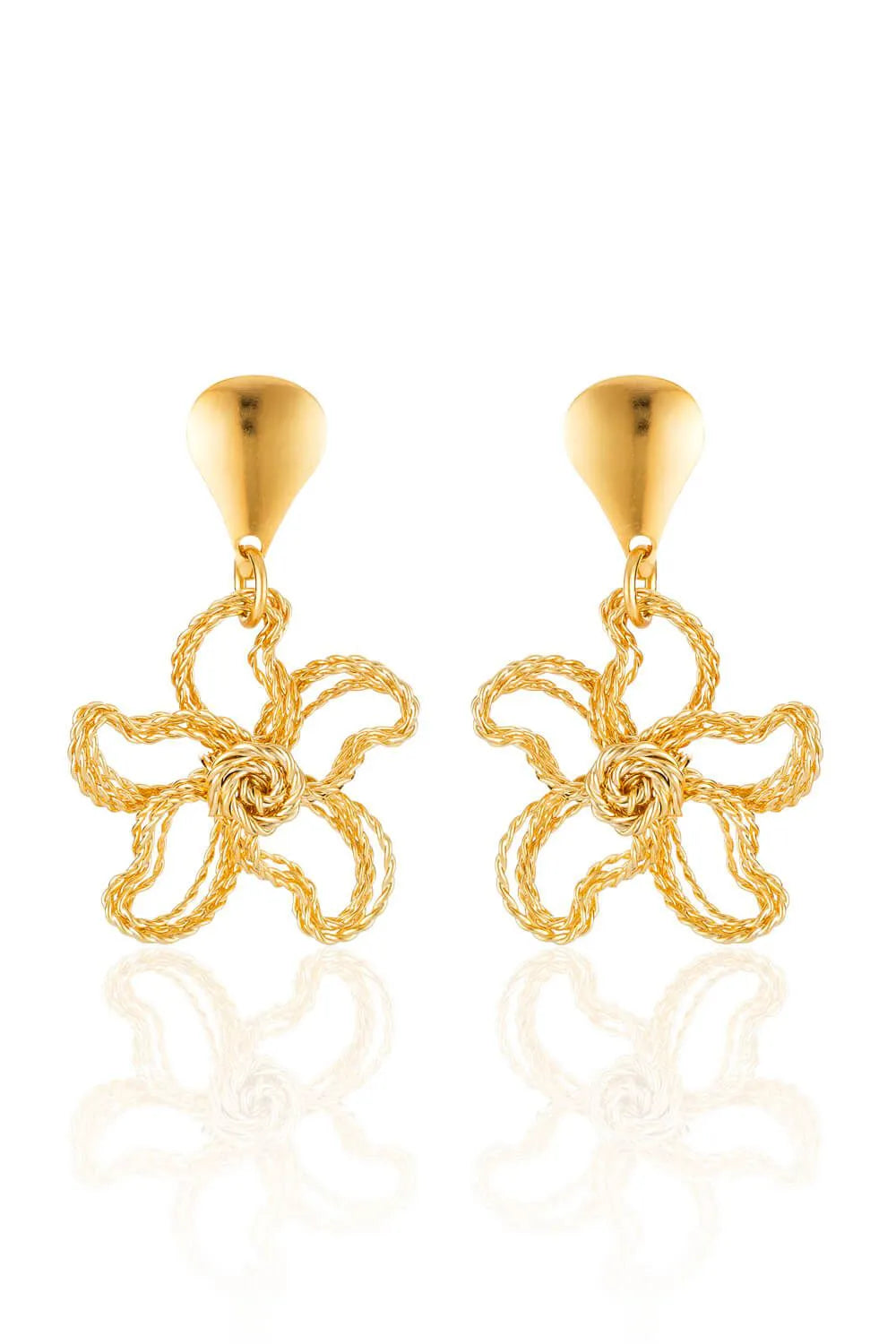 Pendiente elaborado artesanalmente en paja de burití y alambre de cobre bañado en oro para garantizar belleza y brillo.