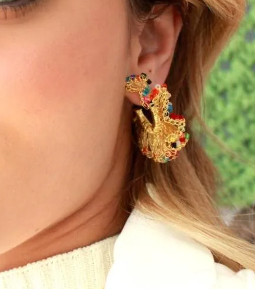 Este hermoso conjunto compuesto por un arete y un collar largo en oro, vidrio negro y mezcla de variaciones de vidrio lleva toda la personalidad de las mujeres apasionadas por sus talentos e inspira el descubrimiento interior.