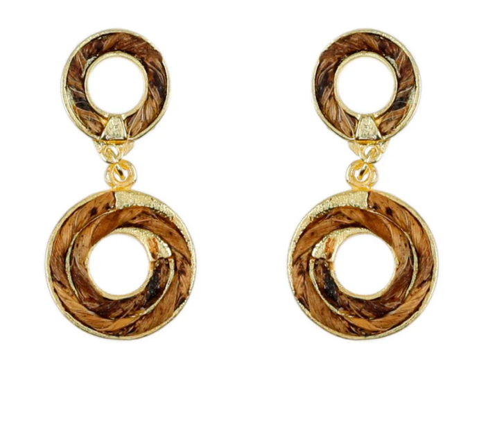 Elegimos fibra de plátano que es rústicamente elegante con metales dorados y detalles de nácar.