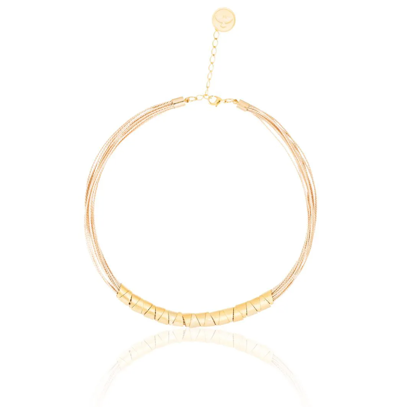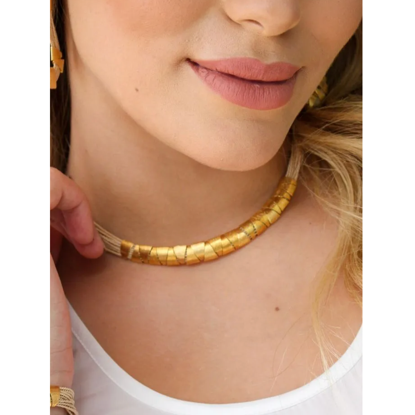 La gargantilla Elementar está elaborada artesanalmente en paja de burití y metales con baño de oro. Son accesorios ideales para ti que amas estar a la última, ¡perfectos para complementar tu maquillaje! ¡No puede estar sin!