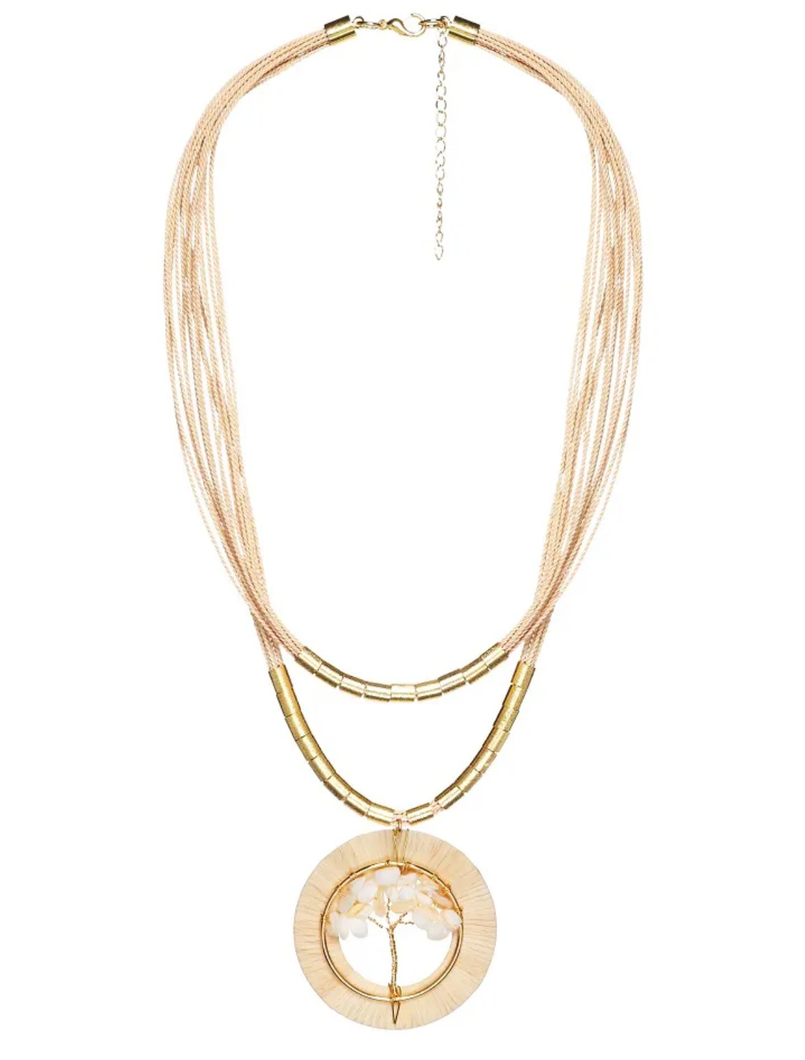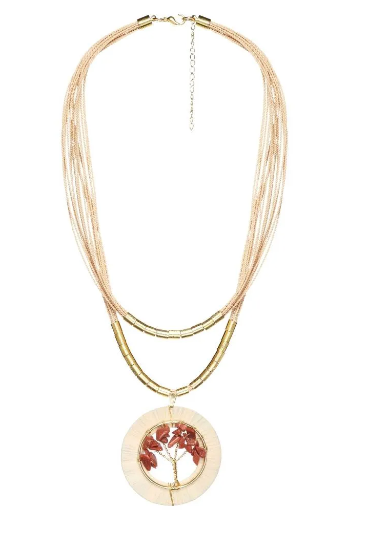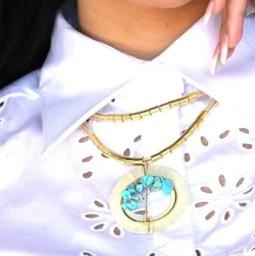 Ipê es un símbolo del Cerrado brasileño, este bioma es propicio para esta especie de árbol que florece más abundantemente en el período seco. El collar está elaborado artesanalmente en seda de paja de burití y 2 vueltas de cuerda de burití, cantos rodados de piedras de diferentes colores, entrelazados y torcidos manualmente con alambre de cobre bañado en oro. ¡Aprovecha para completar el look con el pendiente y la pulsera Ipê!