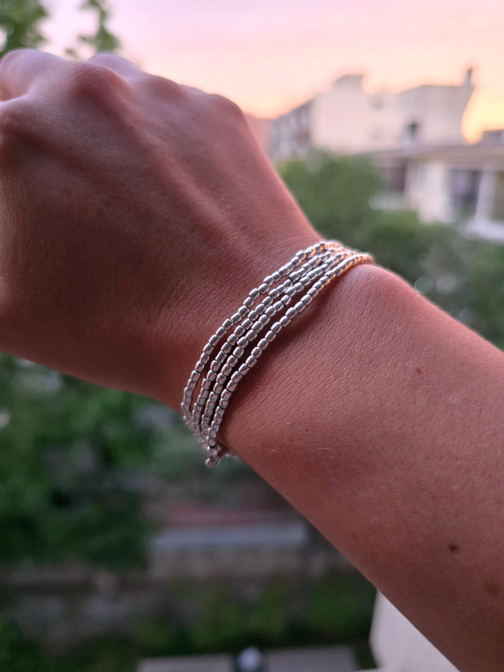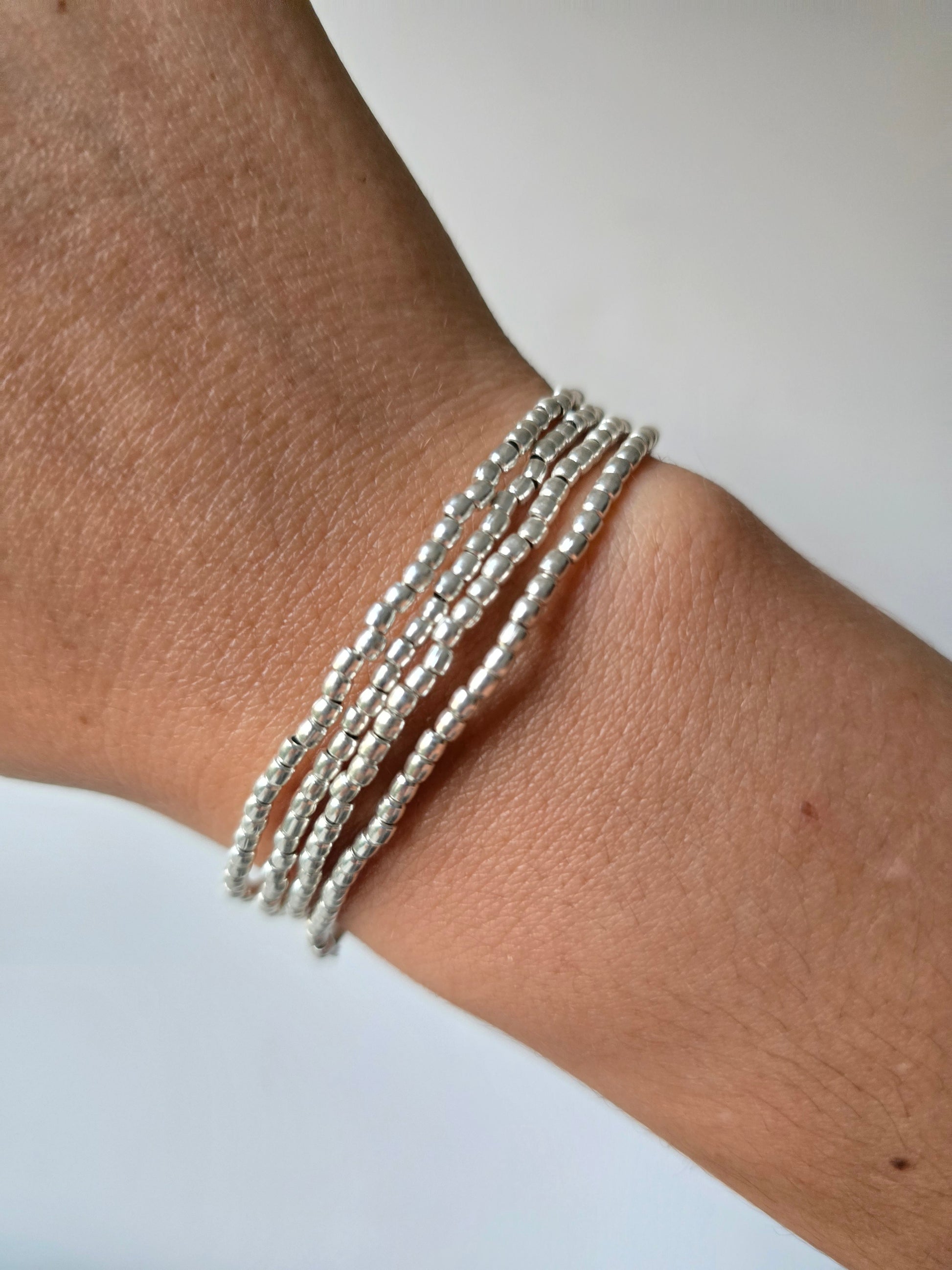 Pulsera de mostacillas de plata 950, hiladas a mano.