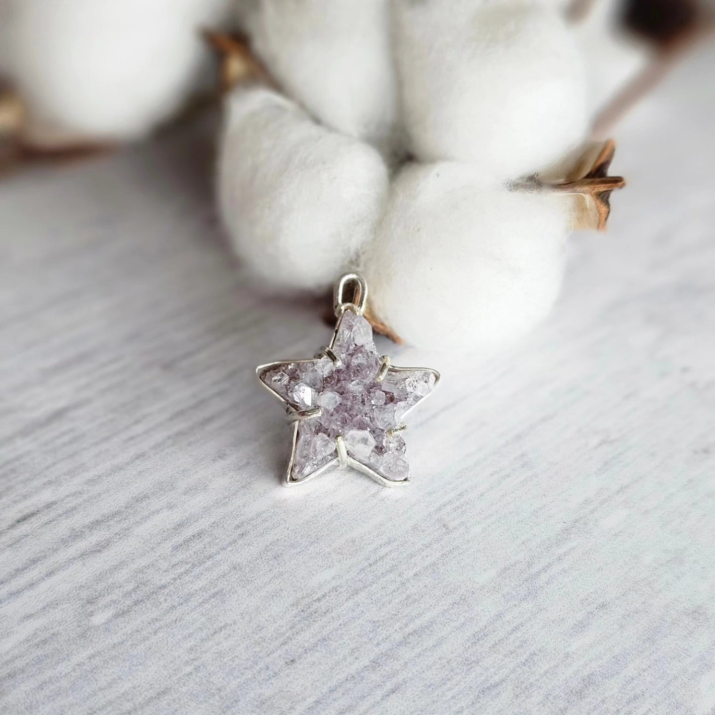 Colgante en base en plata 950 con Drusa de Amatista corte estrella.